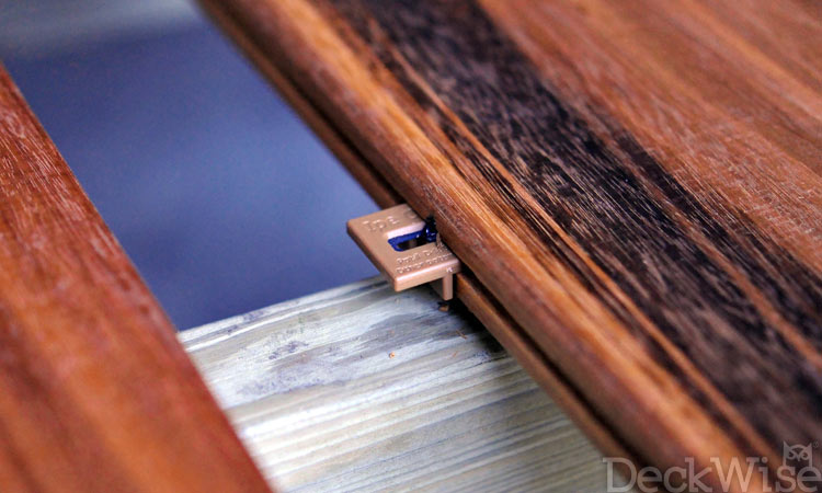 DeckWise® Hidden Deck Fasteners are easy to install and can help extend the life of your hardwood decking. Our patented design mounts on the edge of the deck boards rather than through the top so your finished project is not only a great looking deck but also safer and more structurally stable. Visit Deckwise.com to learn more.